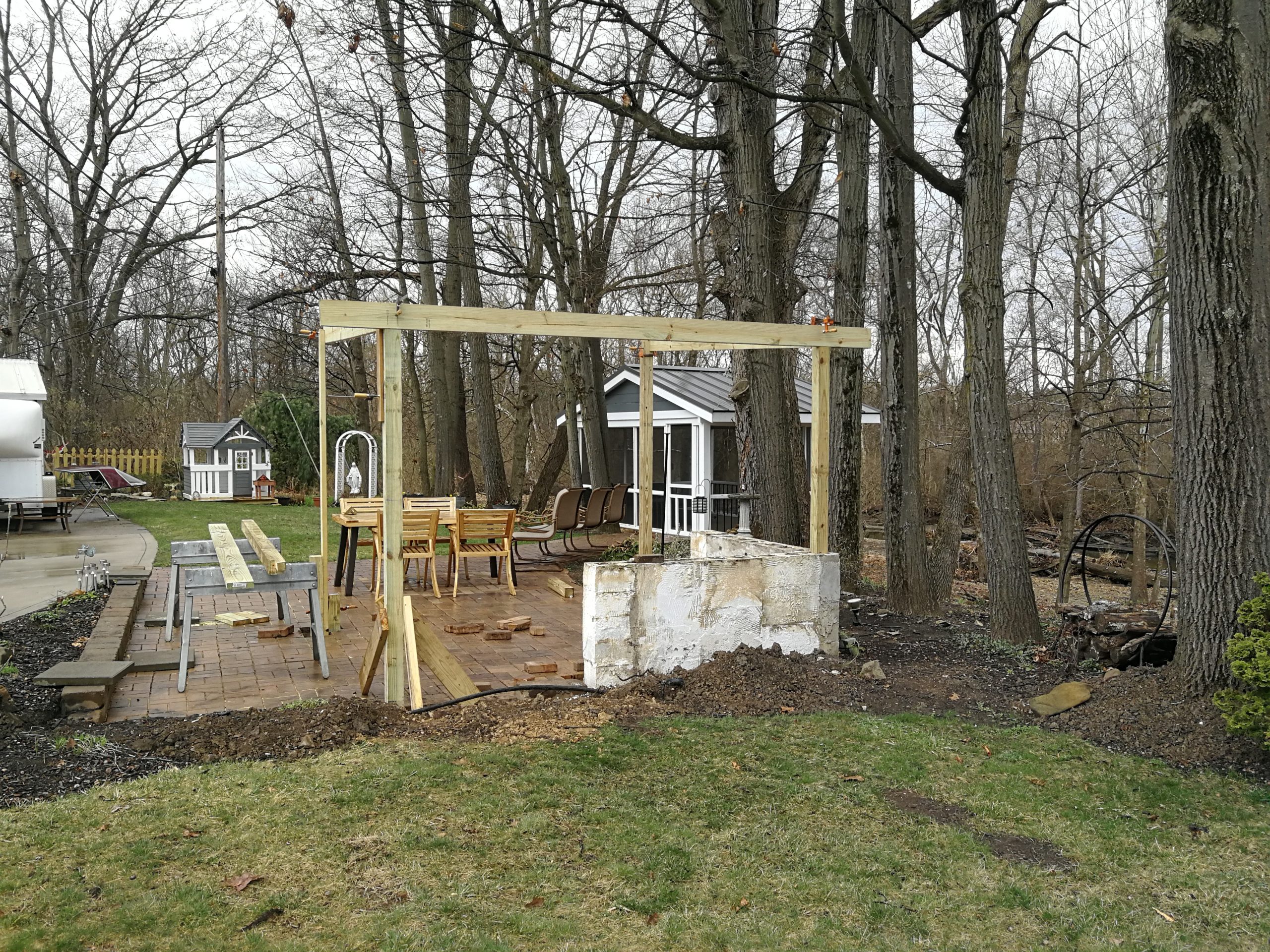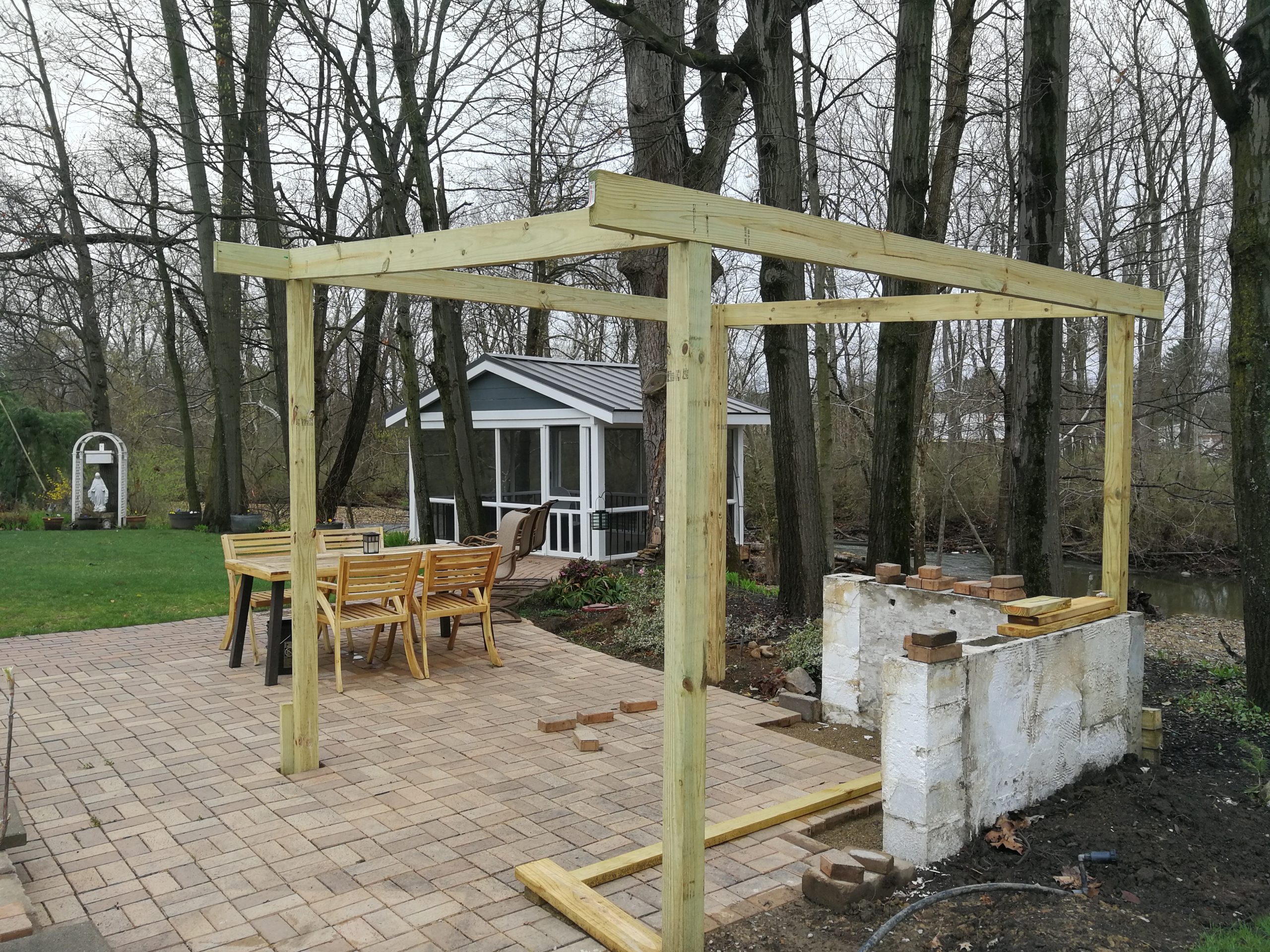 This project was a result of wanting to re-work space in our garden that was a brick patio with a fire pit and a water feature that were literally rarely used.
