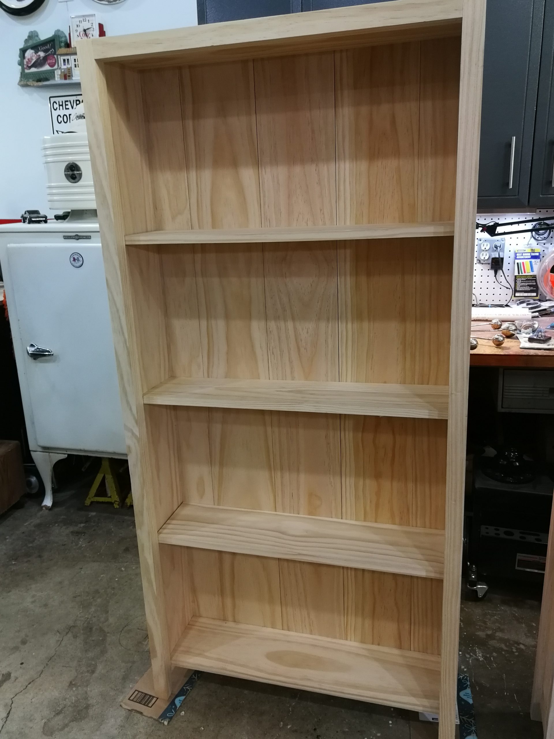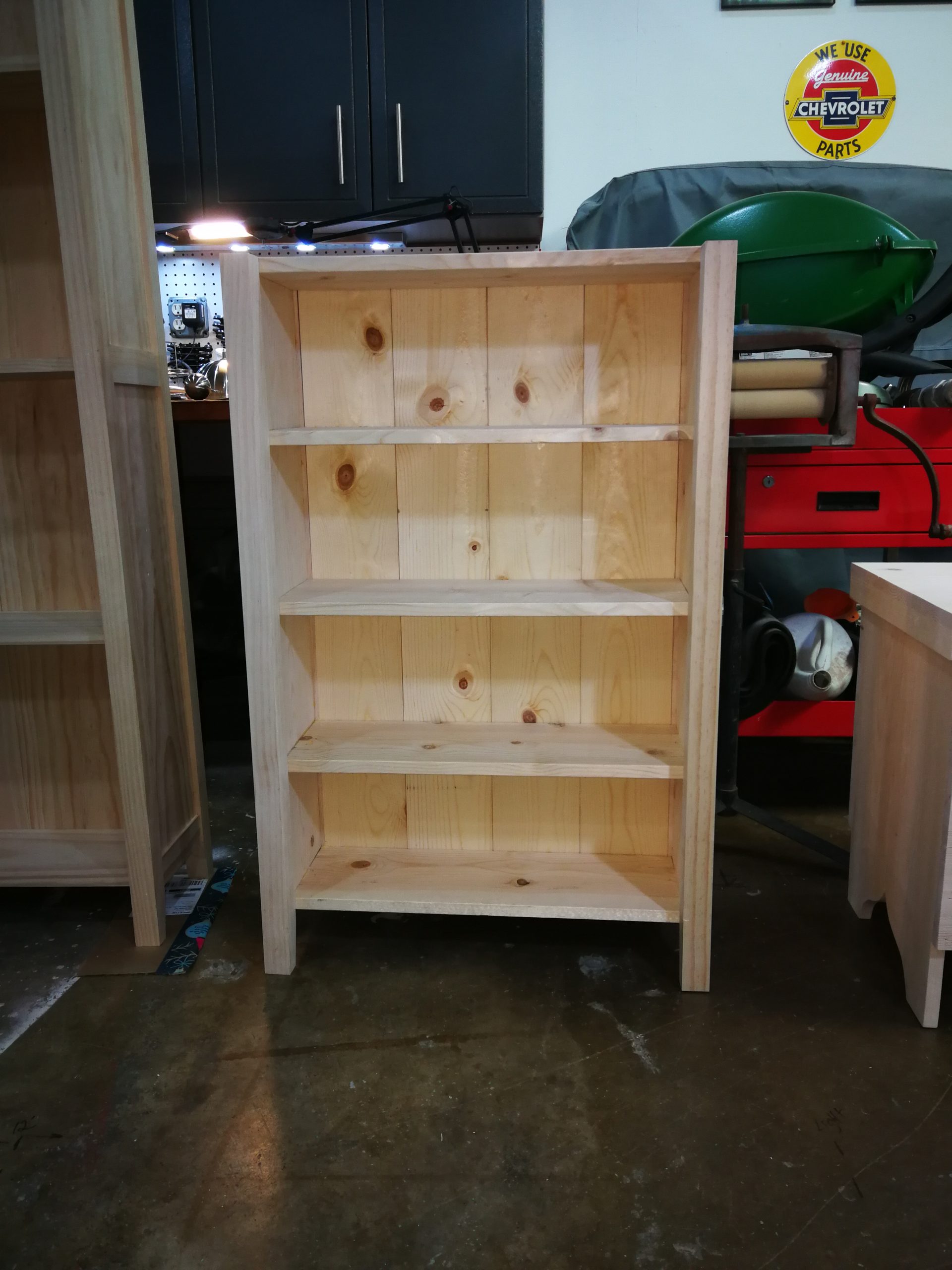 Constructed of locally sourced pine, this custom shelf assembly provides a great space for your home book libraries and other treasures. We can finish the bookshelf in a color of your choice or you can finish it yourself. Check with us about pricing.