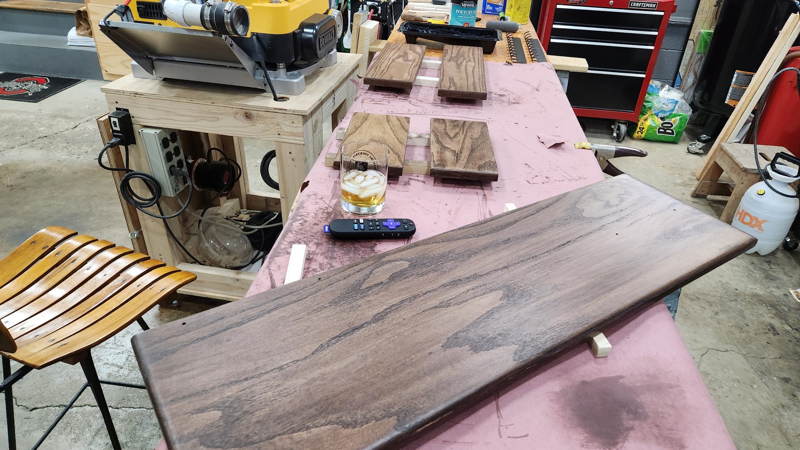 A fun and satisfying project utilizing Poplar, the “other” hardwood. This project was a dream of my customer and we spent a lot of time discussing a custom approach to his hidden door speakeasy conference room idea. Using non-typical methods and a simple design we were able to take a plain shared conference room and turn it into an exciting space that showcases my clients shared office space business and his idea of one of those mysterious prohibition era designs.